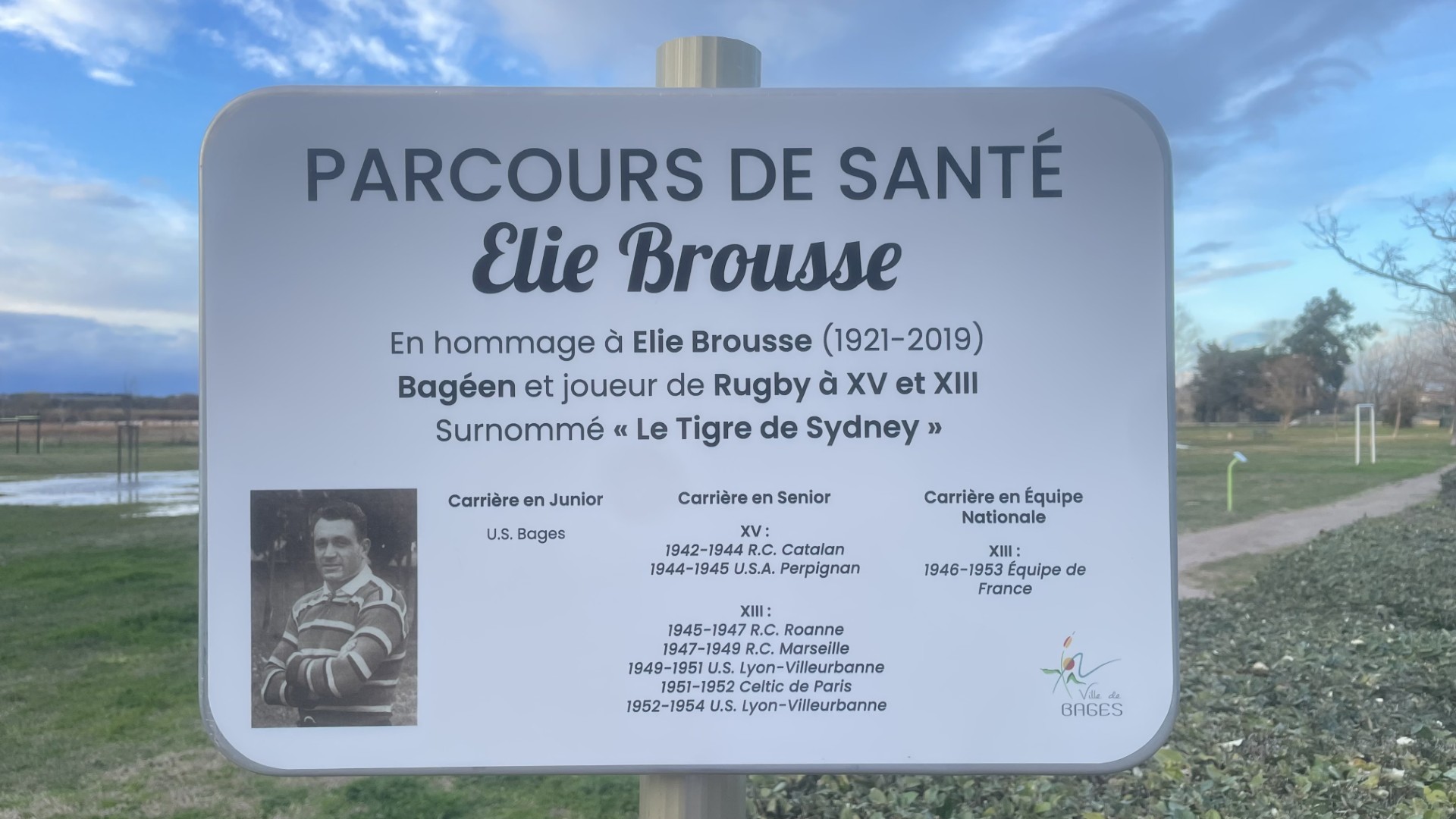 En donnant son nom à ce parc de sport, la commune de Bages souhaite pérenniser la mémoire d’Élie Brousse, transmettre ses valeurs et rappeler aux générations futures qu’il est possible de réussir, de briller, tout en restant fidèle à ses origines.