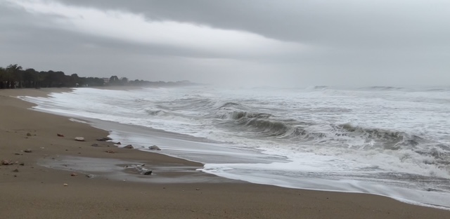 La plage du Racou, sur le territoire de la commune d’Argelès-sur-Mer, hier en fin d’après-midi (photos H.L.)…