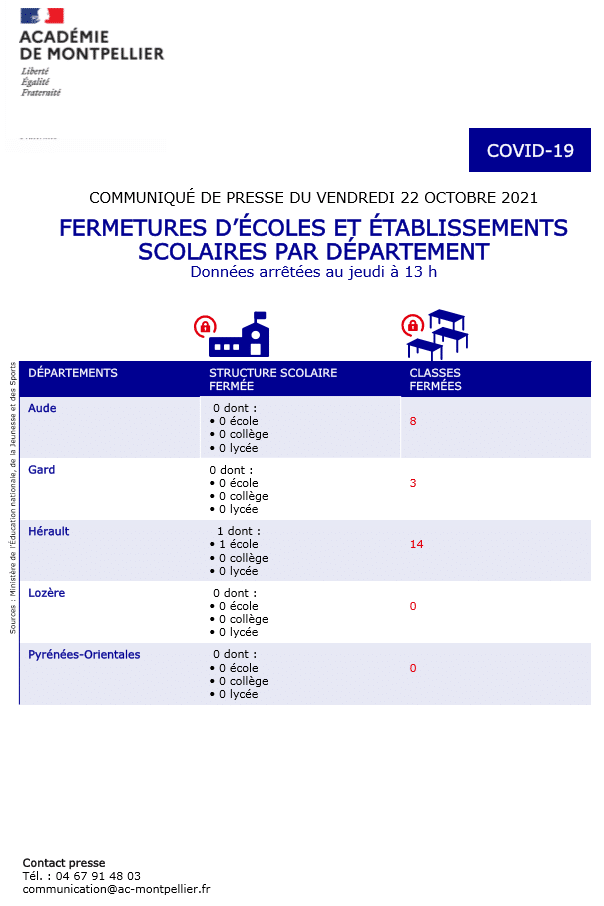 Montpellier/ COVID-19 : le point hebdomadaire sur la situation sanitaire dans les établissements scolaires de l’Académie
