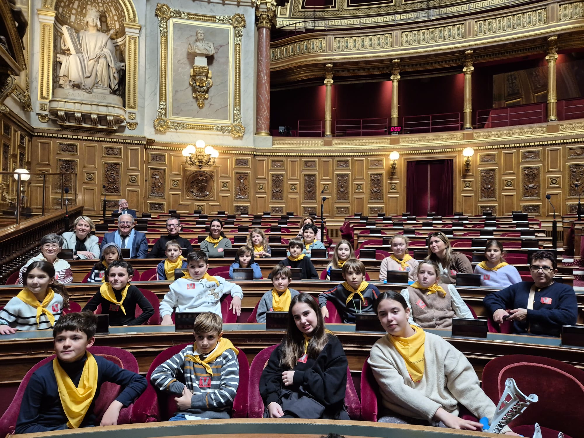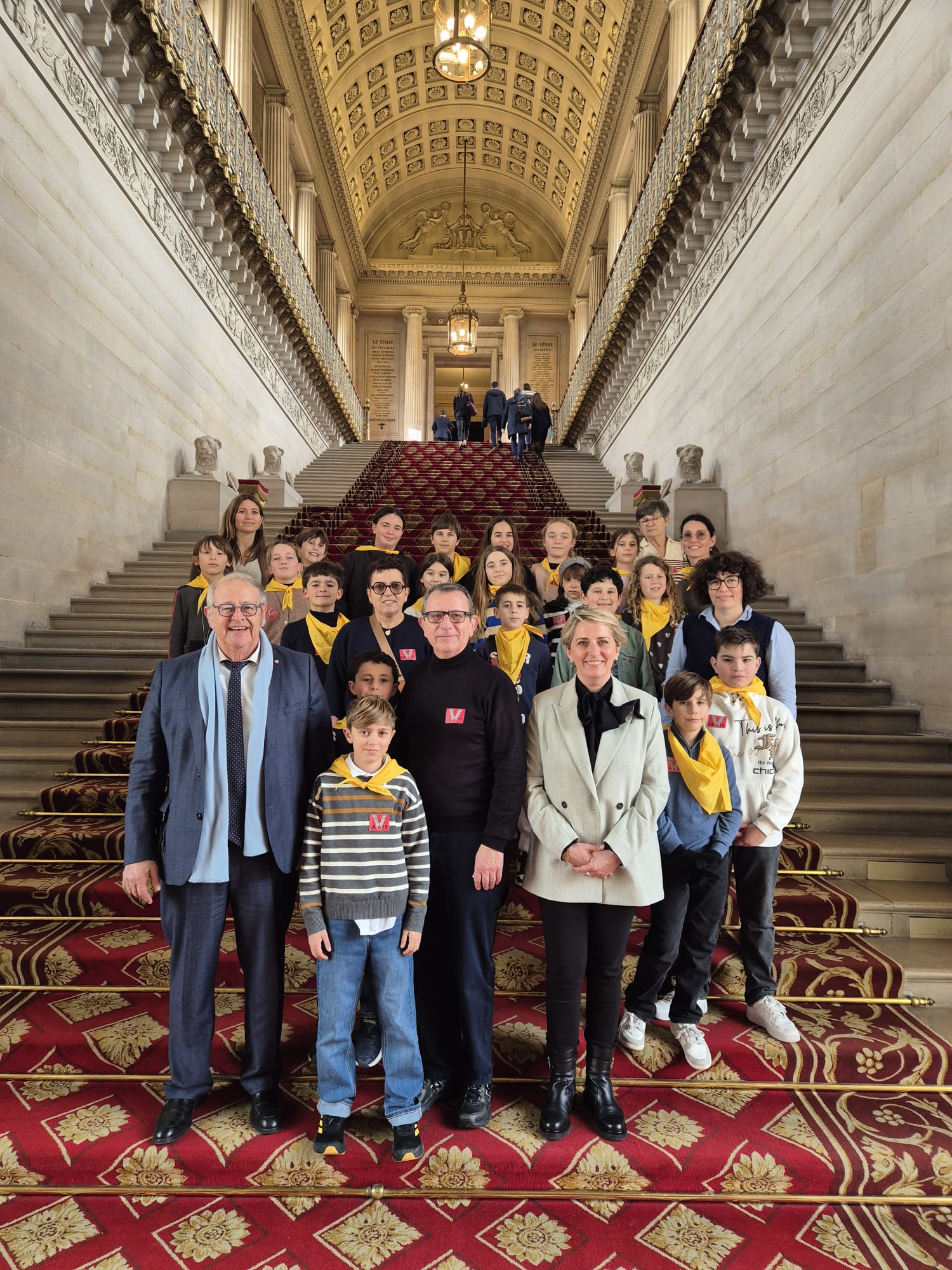 Les élèves ont découvert le Palais du Luxembourg, l’hémicycle et ont pris place en tribune pour assister aux Questions d’Actualité au Gouvernement, avec un hommage rendu aux huissiers du Sénat, gardiens discrets mais essentiels du bon fonctionnement de notre institution.