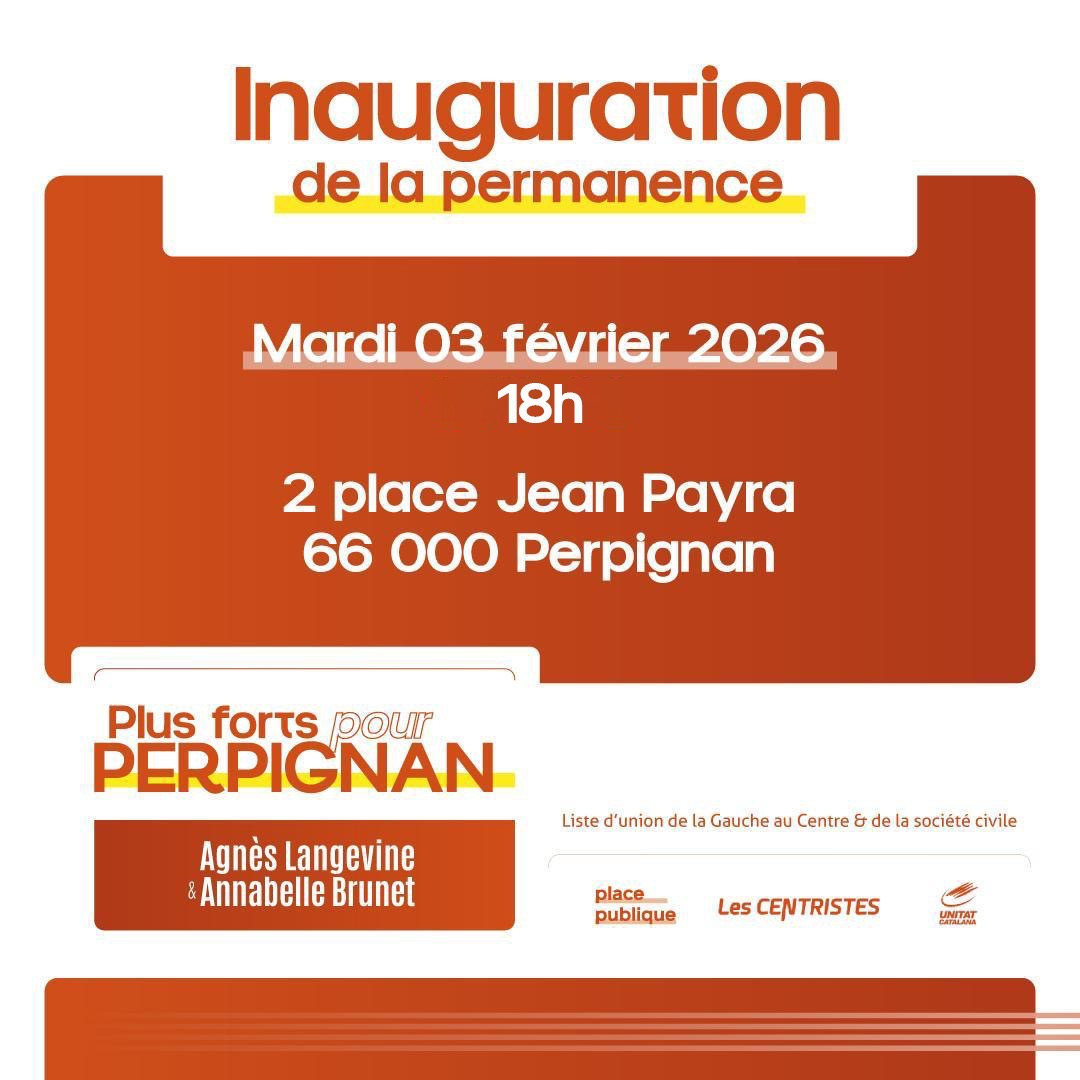 Parlons en ensemble lors de l’inauguration de notre permanence le Mardi 3 février à 18H, 2 place Jean Payra, à Perpignan.