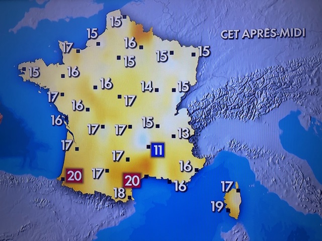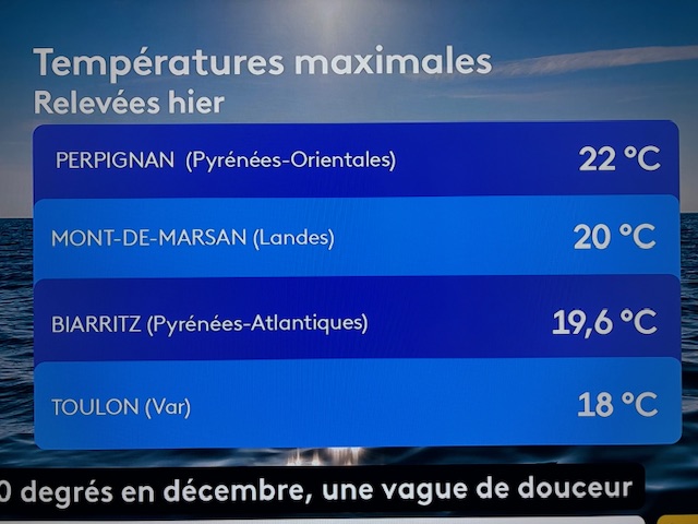 Températures relevées hier, dimanche 7 décembre 2025 (capture d’écran FranceInfo)