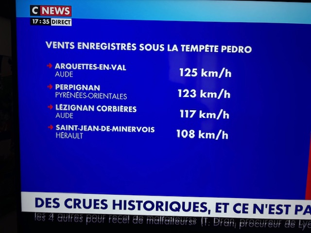 Une rafale de 111km/h vient d’être enregistrée (16H 06) à la station de Perpignan.