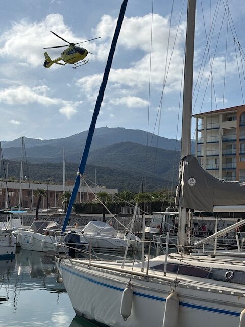 Ce lundi 10 novembre 2025, à la mi-journée, un équipage médical est intervenu à bord de l’hélicoptère du SAMU66 pour secourir un navigateur, ce dans le port d’Argelès-sur-Mer, devant la Maison de la mer.