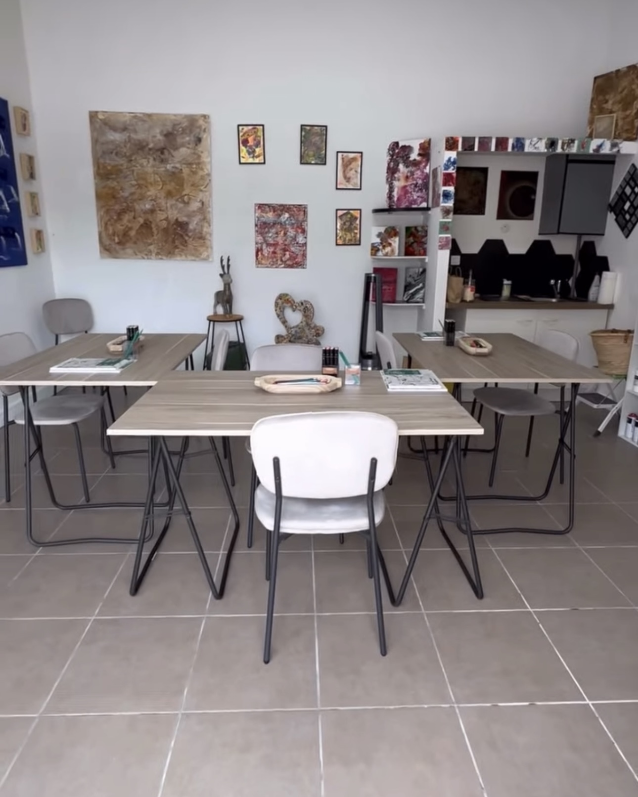 Les visiteurs peuvent y découvrir les œuvres de l’artiste, tandis que les ateliers permettent d’explorer sa propre créativité dans un cadre professionnel et inspirant.