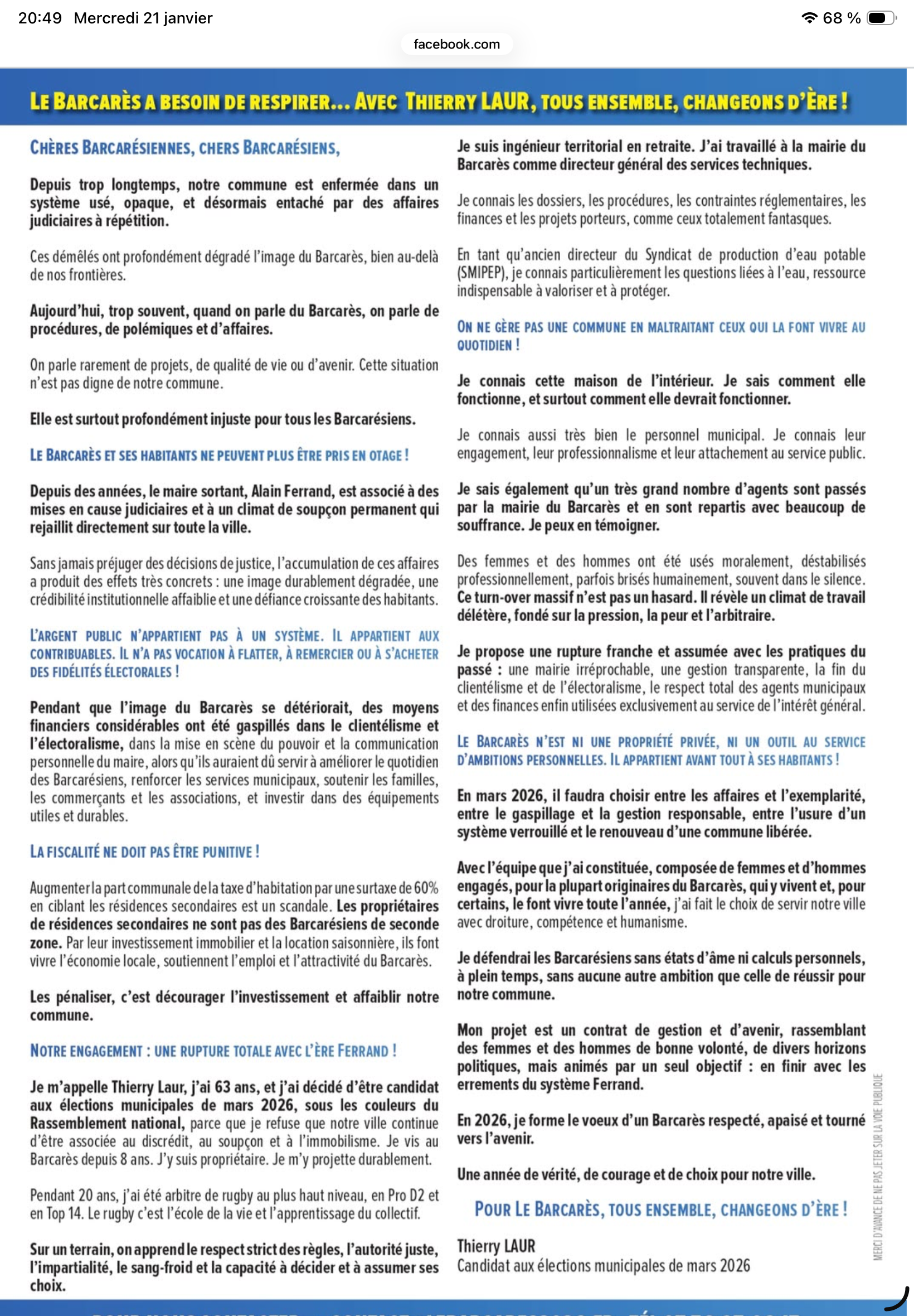 Lettre à Monsieur le maire : Madame Joëlle Iglésias-Ferrand 22, avenue du littoral 66420 Le Barcarès Réf : JF/Maire/04062020 À Monsieur le maire Hotel de ville avenue du 14 juillet 66420 Le Barcarès “Monsieur le Maire, Je fais suite à votre convocation au conseil municipal du 6 Juin 2020. Le premier point de...