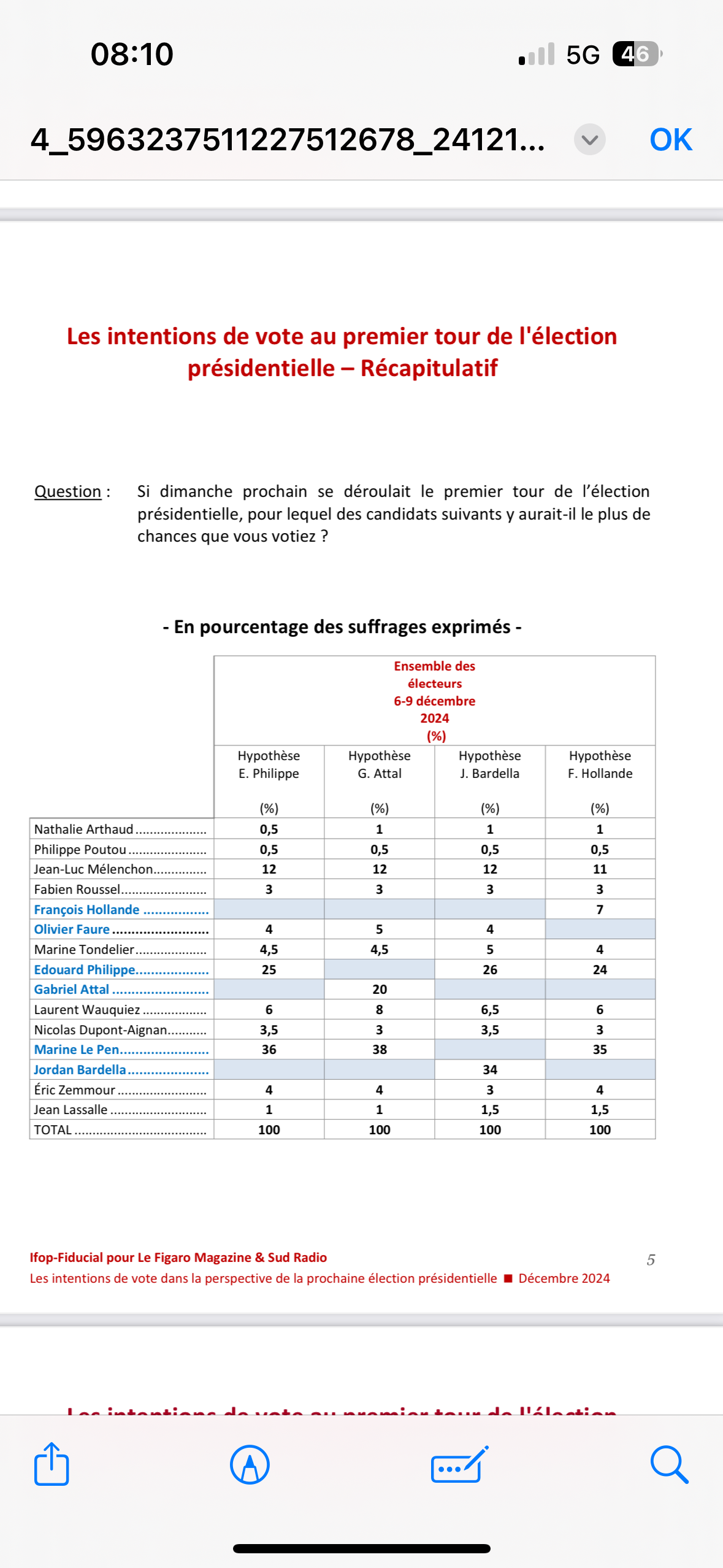 Après la motion de censure, le sondage présidentiel choc EXCLUSIF Figaro Magazine & Sud Radio.– Malgré le vote de la motion de censure, si la présidentielle avait lieu demain, Marine Le Pen verrait son score du premier tour progresser encore et l’écart se creuser face à ses adversaires Édouard Philippe ou Gabriel Attal. La gauche serait...France/ “Nous n’accréditerons pas nos journalistes pour couvrir les manifestations” : laissez-nous rire… enfin une bonne nouvelle…